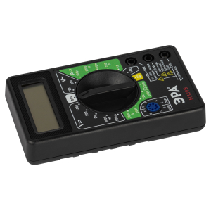 Описание: Цифровой Мультиметр предназначен для измерения постоянного и переменного напряжения, постоянного и переменного тока, сопротивления, проверки диодов (током 0,8 мА), биполярных транзисторов (измерение коэффициента усиления hFE), звуковой прозвонки. Метод измерений – АЦП двойного интегрирования с автоматической коррекцией нуля, автоматическим определением полярности и индикацией перегрузки. Полная защита от перегрузок. Предназначен для применения в полевых условиях, лабораториях, мастерских и домашнем хозяйстве. Миниатюрный, износостойкий, с 3 ½ – разрядным ЖК дисплеем.