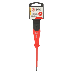 Диэлектрическая крестовая отвертка ЭРА PH 0х75. Современная эргономичная отвертка для работы с электрооборудованием. Изоляционное покрытие позволяет осуществлять работы под напряжением до 1500 В переменного / 1000 В постоянного тока.