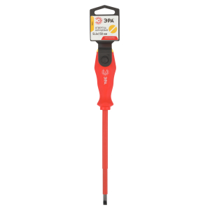 Диэлектрическая шлицевая отвертка ЭРА SL 6х150. Современная эргономичная отвертка для работы с электрооборудованием. Изоляционное покрытие позволяет осуществлять работы под напряжением до 1500 В переменного / 1000 В постоянного тока.
