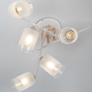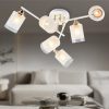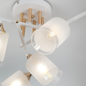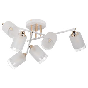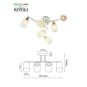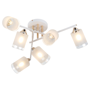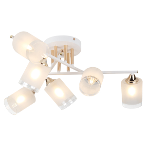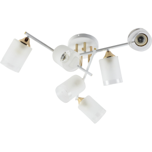 Описание: В коллекции Rivoli Georgiana представлены люстры с 4 плафонами (арт. 9144-203) и люстры с 6 плафонами (арт. 9144-205). Данная люстра потолочная под 6 ламп Е27 60 Вт предназначена для освещения площади до 18 м2, а значит подойдёт для гостиной, спальни и любой комнаты средней или большой площади. Рожки люстры выполнены в виде металлических реек, окрашенных в белый цвет. Основной цвет корпуса люстры дизайнерской Georgiana – белый, эффектный вид люстре придают детали золотого цвета. Матовые плафоны имеют прозрачный декоративный ободок. Люстры с матовыми плафонами хорошо подходят для жилых пространств, так как делают искусственное освещение более мягким.