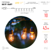Описание: Филаментная светодиодная гирлянда Белт-лайт впервые на российском рынке! Гирлянда уличная ЭРА ERABL-FIL1 с десятью ретро-лампочками на подвесах светит уютным теплым светом. В комплекте 10 LED-ламп удлиненной винтажной формы с нитевидными светодиодами, стилизация под традиционные лампы накаливания. Гирлянда в ретро-стилистике с лампочками на подвесах отлично подходит для новогодних праздников, оформления вечеринок, декорирования двора загородного дома, декоративной подсветки сада, веранды. Гирлянда филаментная ЭРА Белт-лайт подходит для применения снаружи и внутри помещений. Гирлянда новогодняя уличная изготовлена из надежного каучука, защищена от влаги и пыли (IP65). Лампы сменные, патроны под стандартные лампочки Е27. Длина световой части гирлянды - 4,5 метра, длина провода - 60 см. В ассортименте ЭРА есть аналогичная гирлянда с 20 лампами - арт. Б0056018.
