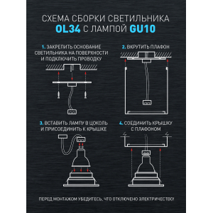 Описание: Накладной светильник OL34 BK делает помещение зрительно более стильным и интересным. Благодаря поворотному механизму светильник может создавать дополнительные световые акценты в помещении. Используя по периметру несколько однотипных осветительных устройств, можно сформировать интеренсые световые геометрические рисунки. Цоколь для источника света GU10, напряжение питания ~230В 50/60Гц, материал алюминий, железо, цвет светильника черный, размер D80*H100мм, максимальная мощность лампы 12Вт, степень защиты IP20