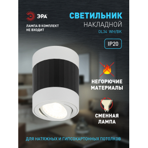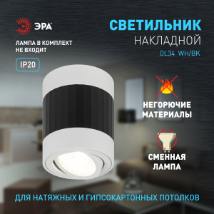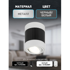 Описание: Накладной светильник OL34 WH/BK делает помещение зрительно более стильным и интересным. Благодаря поворотному механизму светильник может создавать дополнительные световые акценты в помещении. Используя по периметру несколько однотипных осветительных устройств, можно сформировать интеренсые световые геометрические рисунки. Цоколь для источника света GU10, напряжение питания ~230В 50/60Гц, материал алюминий, железо, цвет светильника черно-белый, размер D80*H100мм, максимальная мощность лампы 12Вт, степень защиты IP20