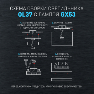 Описание: Накладной светильник OL37 BK является практичным и одновременно стильным. Корпус выполнен из алюминия, рисунок нанесен станком ЧПУ и покрыт устойчивой порошковой краской. Монтаж светильника очень простой. Нет необходимости делать врезное отверстие, чтобы закрепить его. Благодаря простому креплению, светильник можно установить как на стенах, так и на потолке, лестницах и дугих повернхностях помещеня. Цоколь для источника света GX53, напряжение питания ~230В 50/60Гц, материал алюминий, пластик, железо, цвет светильника черный, размер D82*H70мм, максимальная мощность лампы 15Вт, степень защиты IP20