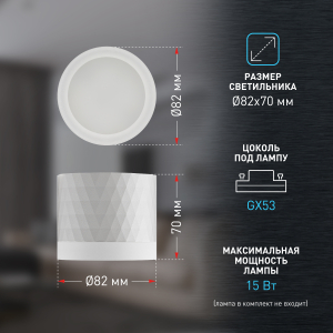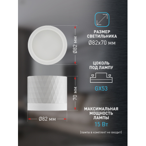 Описание: Накладной светильник OL37 WH является практичным и одновременно стильным. Корпус выполнен из алюминия, рисунок нанесен станком ЧПУ и покрыт устойчивой порошковой краской. Монтаж светильника очень простой. Нет необходимости делать врезное отверстие, чтобы закрепить его. Благодаря простому креплению, светильник можно установить как на стенах, так и на потолке, лестницах и дугих повернхностях помещеня. Цоколь для источника света GX53, напряжение питания ~230В 50/60Гц, материал алюминий, пластик, железо, цвет светильника белый, размер D82*H70мм, максимальная мощность лампы 15Вт, степень защиты IP20