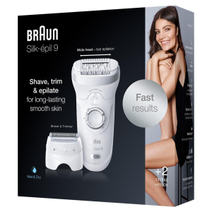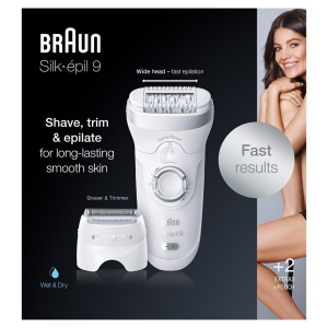 Эпилятор Braun Silk-épil 9 9-705, для сухой и влажной эпиляции, с 2 насадками, белый
