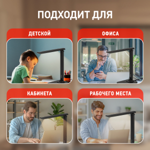 Настольный светильник со светодиодами (LED) в качестве источников света в дизайне под кожу . Выбор цветовой температуры - 3 цвета: 3000К, 4500К, 6000К. Сенсорный переключатель на основании. Плавный диммер для регулировки яркости. Складная конструкция. |