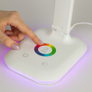 Настольный светильник со светодиодами (LED) в качестве источников света. Выбор цветовой температуры - 3 цвета: 3000К, 4500К, 6000К. Сенсорный переключатель на основании. Плавный диммер для регулировки яркости. RGB LED ночник на основании с независимым сенсорным переключателем, с выбором режимов свечения. Складная конструкция. |