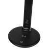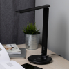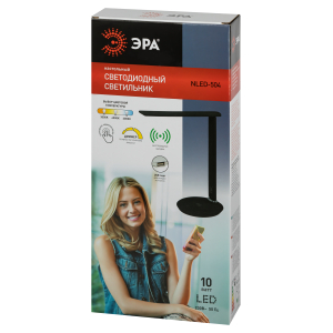 Складной настольный светильник ЭРА NLED-504 с фактурой поверхности "под кожу" черного цвета имеет 3 режима свечения (теплый, нейтральный и холодный свет), сенсорное управление и плавную регулировку яркости, дополнительно оснащен USB портом для зарядки устройств и модулем Qi для беспроводной зарядки. Просто положите телефон, поддерживающий функцию Qi, на основание светильника в отмеченной зоне - светильник подзарядит его.