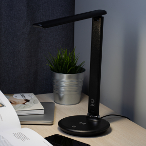 Настольный светильник со светодиодами (LED) в качестве источников света в дизайне под кожу . Выбор цветовой температуры - 3 цвета: 3000К, 4500К, 6000К. Сенсорный переключатель на основании. Плавный диммер для регулировки яркости. Встроенный USB порт для зарядки мобильных устройств, встроенный модуль Qi для беспроводной зарядки. Складная конструкция. |