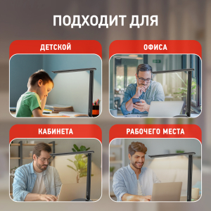 У светильника плафон с регулировкой высоты для удобного напраления света и устойчивое утяжеленное основание с противоскользящими накладками.