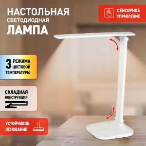 Настольный светильник со светодиодами (LED) в качестве источников света. Встроенный литиевый аккумулятор для автономной работы. Выбор цветовой температуры - 3 цвета: 3000К, 4500К, 6000К. Сенсорный переключатель на основании. Плавный диммер для регулировки яркости. Подзарядка от USB. USB кабель в комплекте. Складная конструкция. |