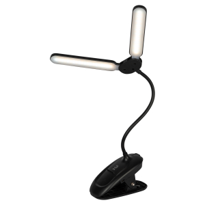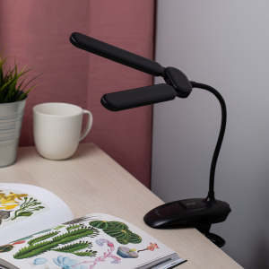 Настольный светильник с двойным плафоном со светодиодами (LED) в качестве источников света. На прищепке. Встроенный литиевый аккумулятор для автономной работы. Выбор цветовой температуры - 3 цвета: 3000К, 4500К, 6000К. Сенсорное переключение. Плавный диммер для регулировки яркости. Подзарядка от USB. USB кабель в комплекте. Гибкая стойка. |