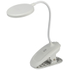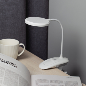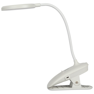 Настольный светильник со светодиодами (LED) в качестве источников света. На прищепке. Встроенный литиевый аккумулятор для автономной работы. Выбор цветовой температуры - 3 цвета: 3000К, 4500К, 6000К. Сенсорное переключение. Плавный диммер для регулировки яркости. Подзарядка от USB. USB кабель в комплекте. Гибкая стойка. |