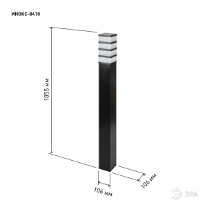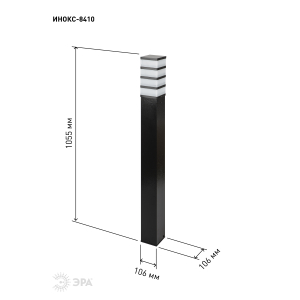 Напольный садово-парковый светильник ЭРА коллекции "Инокс" в виде столба высотой 1055 мм, под 1 лампу. Произведён в Республике Беларусь. В серию ЭРА ИНОКС вошли напольные и фасадные светильники под лампы ЛОН, КЛЛ или LED с цоколем Е27.