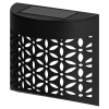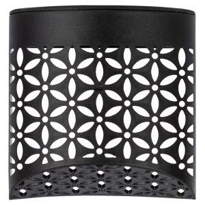 Настенный светильник ЭРА ERAFS024-01 "Лепестки" на солнечной батарее с перфорированным орнаментом в виде цветочных лепестков. Беспроводная подсветка проецирует на фасад красивый световой рисунок. LED-светильник заряжается в течение светового дня и автоматически включается с наступлением темноты. Габариты: 1 1х 11 х 5 см.