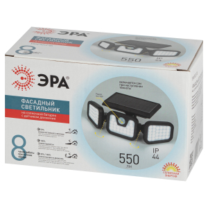 Описание: ЭРА ERAFS012-05 (арт. Б0057601) - трёхсекционный фасадный светильник с широким радиусом подсветки (120°). Встроенная солнечная панель в верхней части корпуса. Общее количество светодиодов - 74. Три светодиодных платы формата мультикристалл-СОВ создают яркий заливающий свет. Уличный LED-светильник имеет 3 режима свечения: 1. режим постоянного свечения (при наступлении темноты автоматически включается и светит постоянно в половину яркости; 2. режим подсветки (светит постоянно в половину яркости, при обнаружении движения включает на 30 секунд полную яркость); 3. режим реакции на движение (при наступлении темноты включает 30% яркости, при появлении движения включает полную яркость на 30 сек). Датчик движения отлично экономит заряд солнечной батареи, что позволяет светильнику проработать от накопленной днём световой энергии в течение всей ночи.