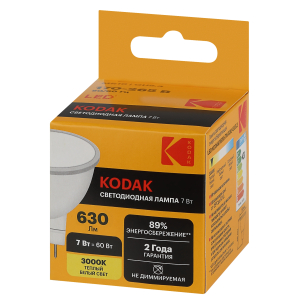 Описание: Представляем Вашему вниманию новинку от легендарного бренда Kodak - светодиодные лампочки, которые украсят Ваш интерьер и наполнят дом светом! Лампы всемирно известной марки отличаются традиционно высоким качеством, продолжительным сроком службы, эксплуатационной надежностью, и, конечно, доступной ценой. LED KODAK MR16-7W-830-GU5.3 - лампочка с цоколем GU5.3, отлично подойдет для самых разных целей: ее можно установить в люстру или светильник на кухне, в спальне, детской комнате или коридоре. Мощность лампы составляет 7Вт, эквивалент лампе накаливания - 60Вт. Цветовая температура - 3000К - теплый свет, подобный к свечению ламп накаливания. Такой свет идеально подойдет для спальни или детской комнаты, благодаря теплому свету помещение наполнится атмосферой тепла и уюта. Диаметр лампочки составляет 50мм, а высота - 48мм. Корпус устройств выполнен из высококачественных алюминия и термо пластика, что делает использование источников света абсолютно безопасным. Невозможно оставить без внимания неоспоримые преимущества технологии, в которой выполнены лампы: LED (светодиоды KODAK). В первую очередь, это высокая светоотдача и низкое энергопотребление: эти источники света тратят в 10 раз меньше, чем лампы накаливания. Срок службы - 35000 часов - более чем 3,5 года постоянного свечения. Еще одно преимущество - светодиоды не содержат в себе ртути и прочих вредных металлов. Купив лампу от Kodak, Вы сможете быть уверены в высоком качестве продукта и безопасности своих близких.