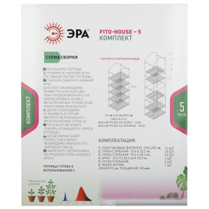 Комплект для успешного выращивания растений в домашних условиях в любой сезон. ЭРА FITO-House-5 — это простая в сборке и очень компактная теплица из металла + 5 линейных фитосветильников для каждого яруса.