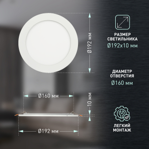 Описание: Круглый светодиодный светильник LED 1-16-4K - замечательное решение для любой комнаты в вашем доме! Светодиодный светильник можно использовать как в качестве основного освещения, так и для создания акцентов в определенных зонах комнаты. Благодаря скрытой части корпуса светильники можно встраивать в потолок или стены, создавая разный стиль помещений. Светильник ЭРА с приятным дизайном подойдет для помещений с разным интерьером: от лофта до модерна, классицизма или минимализма. Светильник обладает цветовой температурой в 4000К, что эквивалентно нейтральному дневному свету. Мощность лампы – 16 Вт. Диаметр отверстия, требуемого для установки светильника составляет 160 мм, а диаметр самого светильника – 192 мм. Купив точечный светильник бренда ЭРА, вы останетесь довольны и сможете создать приятную атмосферу в доме!
