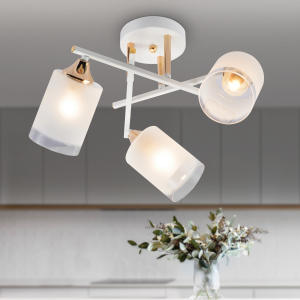 Описание: Люстра Rivoli Tammy (арт. 3162-303) в белом цвете с декоративными элементами золотого цвета. Стиль люстры – модерн. Количество плафонов – 3. Люстра потолочная Tammy применяется с лампами Е27 60 Вт. Плафоны из белого матового стекла расположены на лаконичных рожках в виде перекрёстных металлических реек. По краю плафоны люстры декорированы прозрачной полосой. Корпус дизайнерской люстры изготовлен из лёгкого прочного металла. Основание круглое, люстра быстро монтируется накладным способом на любой потолок. Люстра на эффектных коротких штангах подходит для невысоких потолков. Дизайн люстры создавался так, чтобы эта модель была универсальна для любого интерьера.