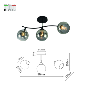 Rivoli Judy (арт. 3159-303) – люстра потолочная с тремя дымчатыми плафонами на металлической рейке с плавными линиями. Дизайнерская люстра Judy выполнена в стиле модерн. Коллекцию потолочных люстр для гостиной, для кухни, для спальни дополняет модель с двумя плафонами из тонированного дымчатого стекла – арт. 3159-312.