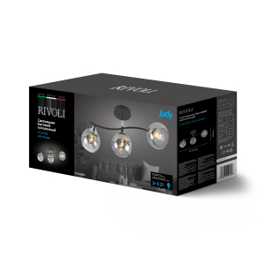 Корпус 3-рожковой люстры Rivoli Judy выполнен из металла и имеет стойкое покрытие, нанесённое гальваническим способом. Основной цвет окрашивания люстры – чёрный, присутствуют акцентные хромированные детали. Люстра универсальная Rivoli Judy освещает площадь до 9 м2. |