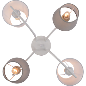 Описание: Коллекцию Chris итальянского бренда Rivoli составляют: люстры с 2 плафонами (арт. 3154-312), люстры с 4 плафонами (арт. 3154-304), бра (арт. 3154-401). Оригинальная деталь дизайна данной люстры – чередование плафонов, расположенных стандартно, и плафонов перевёрнутых. Цвета плафонов люстры – белый и серый. Плафоны дизайнерской люстры перетянуты качественной абажурной тканью. Игривое решение с перевёрнутыми плафонами смягчается лаконичностью арматуры и окрашиванием корпуса в базовый белый цвет. Rivoli Chris – хороший вариант люстры в современную гостиную, стильной люстры на кухню, люстры в детскую комнату или люстры в кабинет.