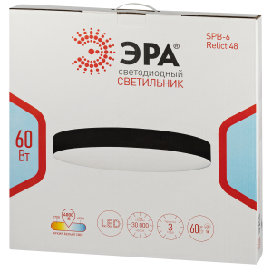 Потолочный светильник ЭРА SPB-6 Relict в чёрном цвете - арт. Б0059501. Диаметр - 48 см. Мощность - 60 Вт. Температура света - 4000 К: нейтральный белый, приближенный к естественному дневному. Такая цветовая температура идеальна для освещения как жилых пространств, так и коммерческих площадей. Светильник на потолок имеет минималистичный дизайн. Внешнее кольцо выполнено из метала с порошковым окрашиванием. Светильник потолочный не имеет рамок, обрамляющих рассеиватель с лицевой стороны, что придаёт ЭРА Relict эстетичный внешний вид. Благодаря простому конструктиву удалось добиться выгодной цены, при этом ЭРА SPB-6 Relict по своей надёжности и внешнему виду не уступает более дорогим вариантам на рынке. Новый конструктив не влияет на долговечность и функциональность светильника.
