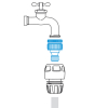 Описание • Внутренняя резьба, которую можно навинтить на кран • Удобная поверхность захвата • Муфта с наружной резьбой для соединения с коннектором шланга
