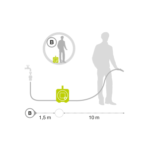• 11,5 м гибким плетеным шлангом (10 м внутренний втягивающийся + 1,5 м внешний)