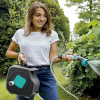 Новая катушка для шланга в мини-версии идеально подходит для полива растений, цветов и горшков, размещенных на террасах, балконах, верандах и в небольших садах. Благодаря двойному режиму использования (транспортировка и хранение), он чрезвычайно практичен во время использования, поскольку он компактен, легок и имеет новый привлекательный дизайн, который делает отдых на свежем воздухе еще более приятным. Оснащен: