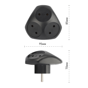 Описание: Сетевой разветвитель (тройник) ЭРА SPx-3-B на 3 розетки, без заземления. Цвет-черный. Максимальная мощность - 10А/2200 Вт, материал корпуса - полипропилен (пластик премиум сегмента). Эксклюзивный продакт-дизайн.