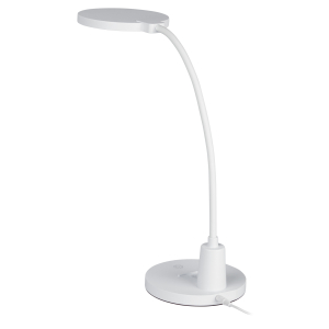 Настольный светильник со светодиодами (LED) в качестве источников света. Нейтральный белый свет - цветовая температура 4000К. Сенсорный переключатель на основании. Трехступенчатый диммер для регулировки яркости. Высокая гибкая стойка. |