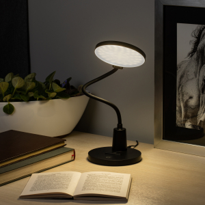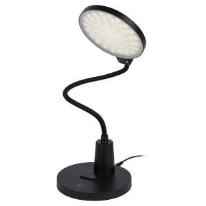 Настольный светильник со светодиодами (LED) в качестве источников света. Нейтральный белый свет - цветовая температура 4000К. Сенсорный переключатель на основании. Трехступенчатый диммер для регулировки яркости. Высокая гибкая стойка. |