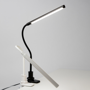 Настольный светильник со светодиодами (LED) в качестве источников света. Нейтральный белый свет - цветовая температура 4000К. Сенсорный переключатель на плафоне. Плавный диммер для регулировки яркости. Высокая гибкая стойка. Модель на струбцине. |