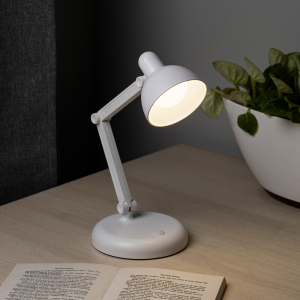 Настольный светильник со светодиодами (LED) в качестве источников света. Работает от элементов 3 х АА (не входят в комплект поставки) или от USB. USB кабель в комплекте. Выключатель на основании светильника. Нейтральный белый свет - цветовая температура 4000К. |