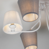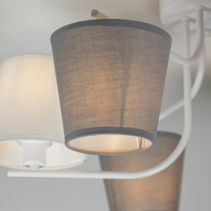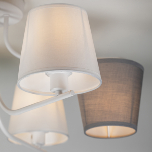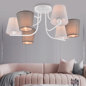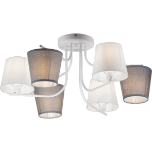 Оригинальная деталь дизайна данной люстры – чередование плафонов, расположенных стандартно, и плафонов перевёрнутых. Цвета плафонов люстры – белый и серый. Плафоны дизайнерской люстры перетянуты качественной абажурной тканью. Игривое решение с перевёрнутыми плафонами смягчается лаконичностью арматуры и окрашиванием корпуса в базовый белый цвет. Rivoli Chris – хороший вариант люстры в современную гостиную, стильной люстры на кухню, люстры в детскую комнату или люстры в кабинет. |