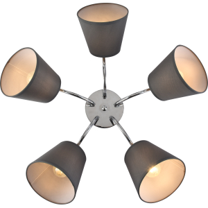 Описание: Люстра Rivoli Alexa (арт. 9163-305) в сером цвете, с хромированной арматурой, с пятью плафонами из абажурной ткани. Люстра итальянского дизайна по доступной цене. Коллекцию Alexa Rivoli дополняет люстра потолочная с тремя плафонами – арт. 9163-303. Для люстры Alexa необходимо купить лампы Е27 60 Вт – 5 шт. Современная люстра Rivoli Alexa качественно освещает площадь до 15 м2. Такая классическая интеллигентная люстра подойдёт в гостиную, на кухню, в спальню. Люстра Alexa станет украшением пространства и удачно дополнит множество стилей – модерн, классика, современная классика, скандинавский, кантри, американский. Направленные в разные стороны плафоны люстры потолочной Rivoli Alexa равномерно распределяют свет.