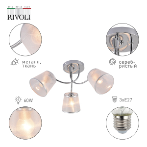 Rivoli Shirley – элегантные серебристые люстры с переплетающимися металлическими рожками. Коллекция Shirley создана итальянскими дизайнерами бренда Rivoli и включает в себя потолочные люстры под 3 лампы (арт. 9167-303) и люстры потолочные под 5 ламп (арт. 9167-305).