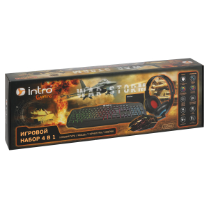 Описание: Игровой комплект из мыши, клавиатуры, гарнитуры и коврика для ПК.