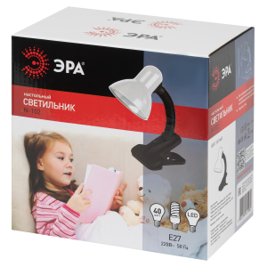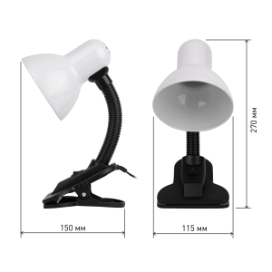 Светильник может использоваться с лампой накаливания, компактной люминесцентной лампой (КЛЛ) или светодиодной (LED) лампой. Прочная прищепка. Металлический плафон. Наклон и поворот плафона в любом направлении. |