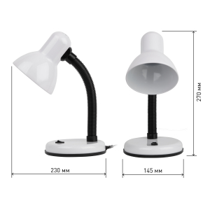 Светильник может использоваться с лампой накаливания, компактной люминесцентной лампой (КЛЛ) или светодиодной (LED) лампой. Устойчивое основание. Металлический плафон. Наклон и поворот плафона в любом направлении. |