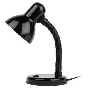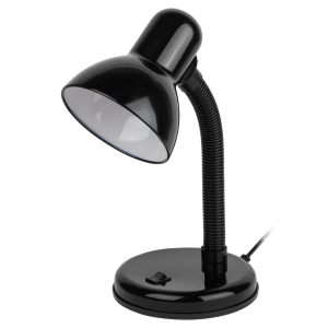 Металлический плафон. Направление света регулируется гибкой стойкой, которая обеспечивает наклон и поворот плафона в любом направлении. Выключатель на основании. Классический дизайн.