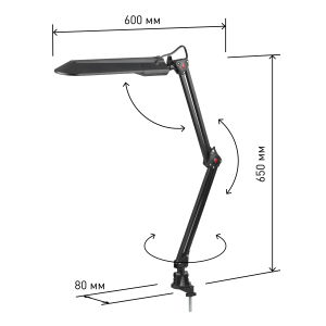 Светильник предназначен для использования с энергосберегающей лампой, лампа входит к комплект. Удобное крепление на струбцину к любой плоской поверхности. Высота плафона регулируется двухсекционной сгибающейся стойкой. |
