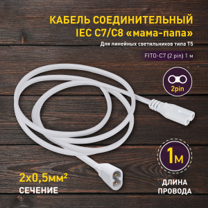 Описание: ЭРА FITO-C7 (2 pin)- это соединительный кабель для подключения нескольких светильников в единую цепь. Подходит для серий линейных фитосветильников ЭРА FITO Т5-N и ЭРА Т5-Ra90. Длина - 1 м. Двужильный кабель ПВС 2х05 мм2. Двойной штекер на двойной разъем.