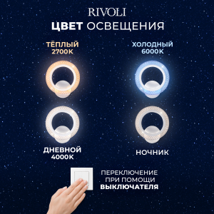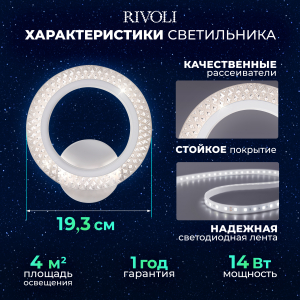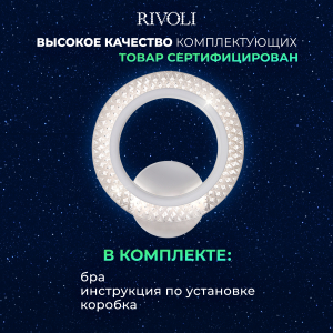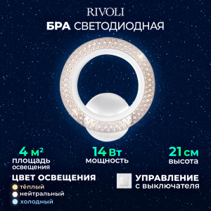 Описание: Настенный светильник Бра Rivoli Marion — это компактный и элегантный осветительный прибор. Мощность 14 Вт и цветовая температура 2700-6000 К делают его идеальным для освещения небольших площадей до 4 м². Изготавливается из акрила и использует современные светодиоды, которые безопасны для глаз. В комплекте есть всё необходимое для установки.
