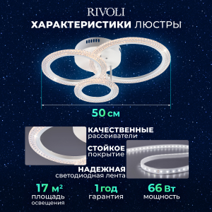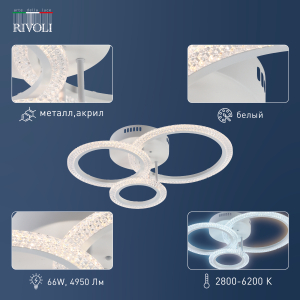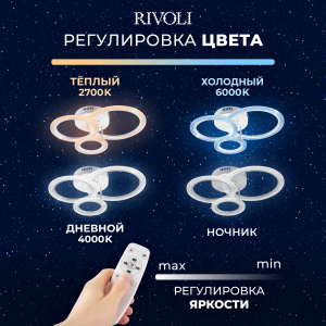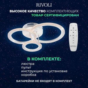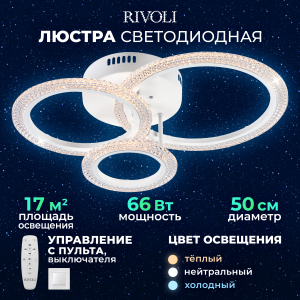 Описание: Модель Rivoli Marion мощностью 66 Вт освещает помещения площадью до 17 м². Цветовая температура варьируется от 2700 до 6000 К, позволяя выбрать оптимальное освещение в зависимости от времени суток и ваших предпочтений. Ночной режим обеспечивает мягкое и приятное освещение для комфортного сна. Корпус светильника выполнен из акрила, что придает ему долговечность и стильный внешний вид. Светодиоды нового поколения обеспечивают безопасный и яркий свет. В комплект входят все необходимые элементы для установки, универсальное крепление подходит для различных типов потолков. Батарейки для пульта не включены.