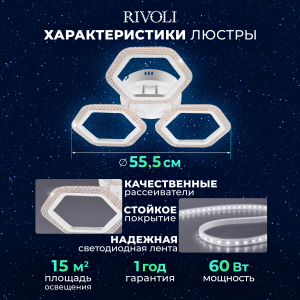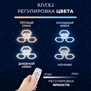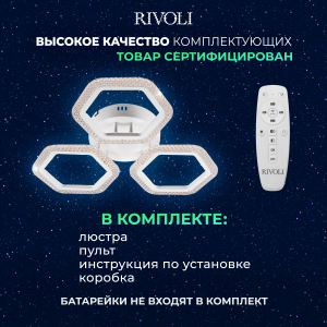 Описание: Потолочный светильник Rivoli Nancy с пультом ДУ — отличное решение для создания уютного освещения. С мощностью 60 Вт и цветовой температурой от 2700 до 6000 К, этот светильник эффективно освещает площадь до 15 м². Изготовлен из акрила, он обеспечивает безопасный для глаз свет благодаря светодиодам нового поколения. В комплекте вы найдете всё необходимое для установки, а универсальное крепление обеспечивает совместимость с разными типами потолков. Обратите внимание, что батарейки для пульта не включены.