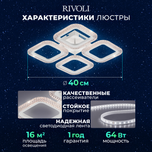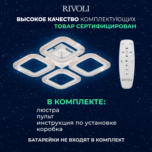 Описание: Потолочный светильник Rivoli Nikki с пультом ДУ — это стильный и мощный выбор. С мощностью 64 Вт и цветовой температурой 2700-6000 К, он освещает площадь до 16 м². Изготовленный из акрила, светильник использует современные светодиоды, которые не вредят глазам. В комплекте вы найдете все необходимое для установки, а универсальное крепление подходит для различных потолков. Обратите внимание, что батарейки для пульта не включены.